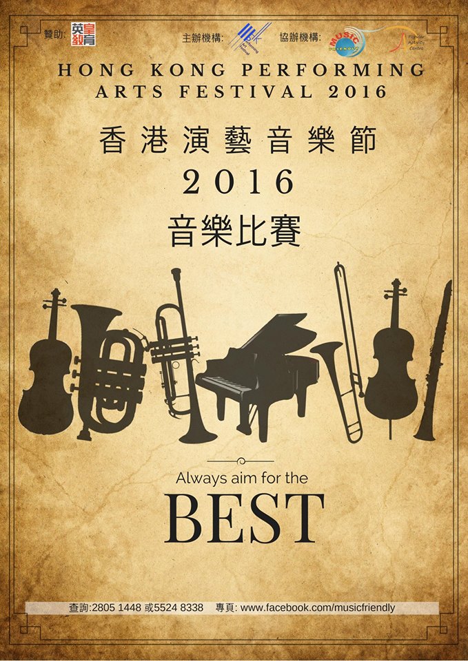 「香港演藝音樂節2016 音樂比賽」現正接受公開報名.