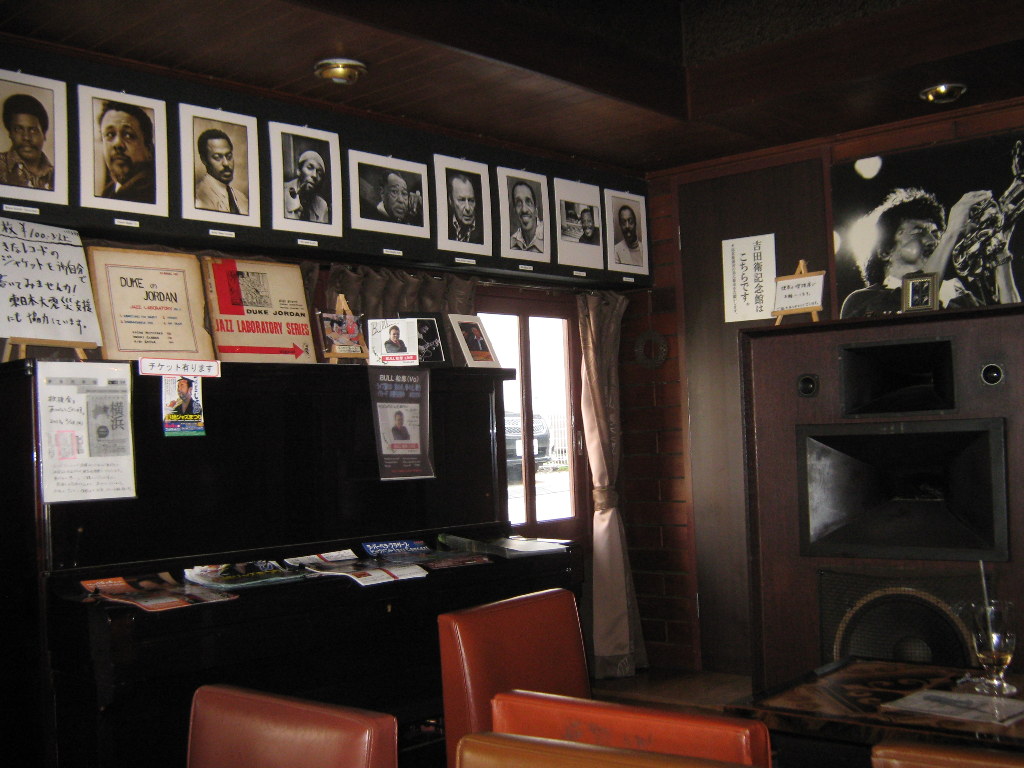 店主吉田衛在1933年開了這家爵士喫茶店,珍藏了六千張黑膠唱片,是爵士粉絲的朝聖之後地。可是1945年二次世界大戰是的一次空襲,全店心血給化為灰燼。但店主對爵士的熱愛絲毫不減,靠朋友熟客的幫助,3年後集回一千多張唱片再開店。著名日本爵士樂手渡邊貞夫,日野晧正等也是常客。店主去世後曾一‭ ‬度閉店,在其家人的堅持下於2010年重開了。這裡見證了日本的爵士樂發展,是個小型博物館。在2樓真的有一個‘吉田衛紀念館’,保存了昔日的珍貴照片和用具。這裡的唱片經常更新,也有不定期的live,週末還舉辦爵士樂講座和比賽。