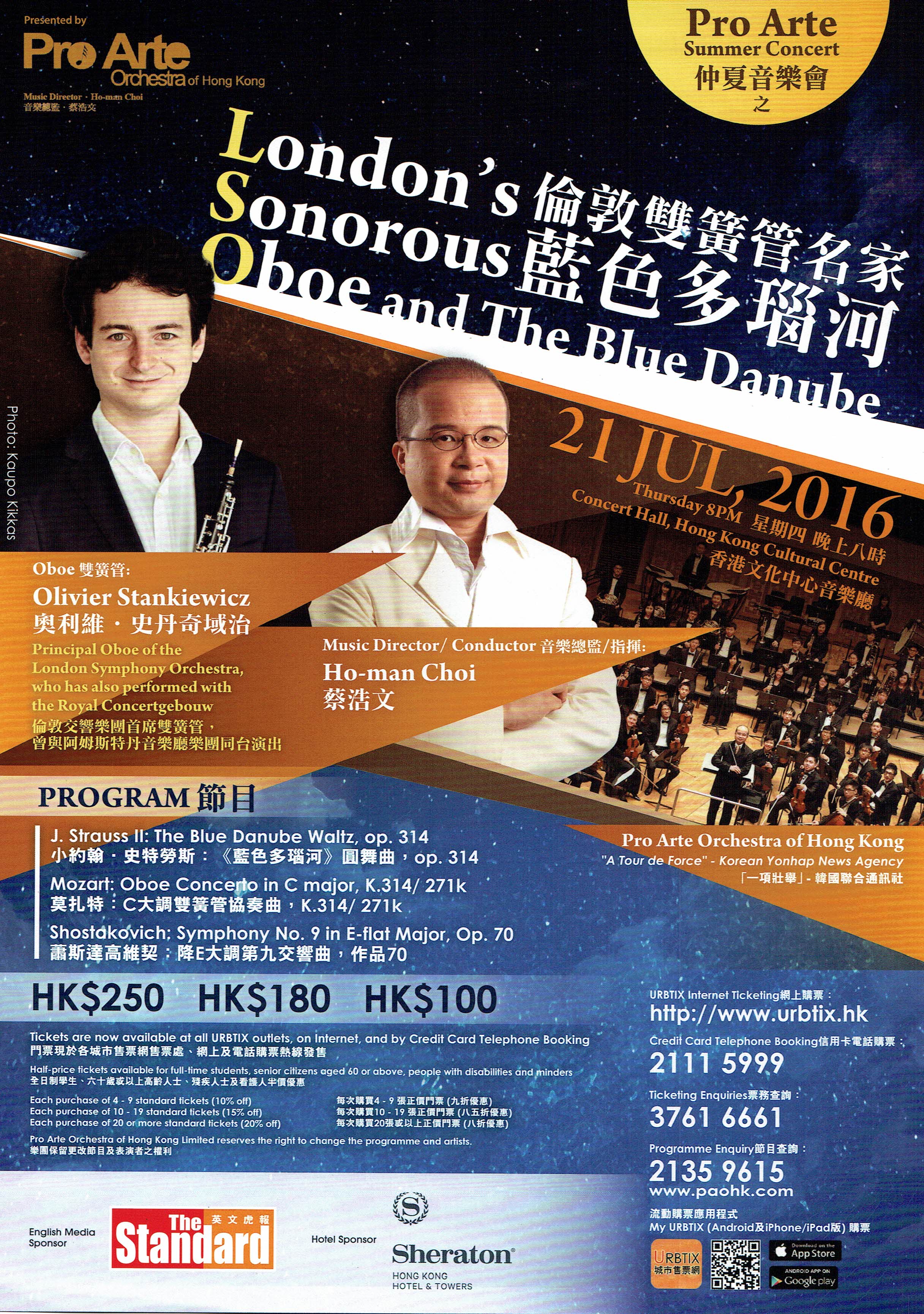 【節目分類:管弦樂音樂會】Pro Arte仲夏音樂會之藍色多瑙河.倫敦雙簧管名家