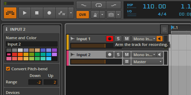 錄音通常要「Arm for recording」之後再按錄音鍵錄音,「Arm for recording」的意思就是準備錄音,開啟後你便可以聽到mic的聲音,這時候你便可以確認設置沒有問題,若有問題可以即時更改。