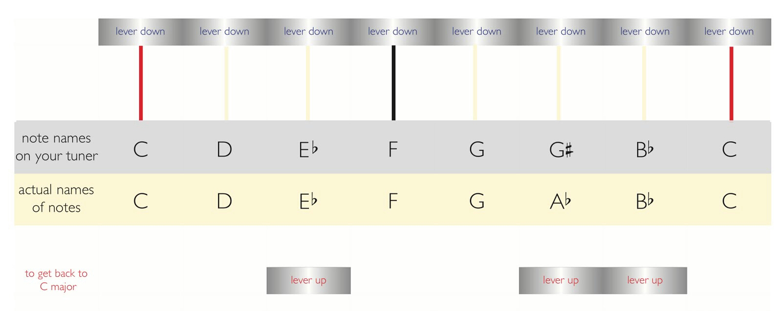 好多學生不想算換音階,調音時會把腳踏豎琴(Pedal Harp) 或手制豎琴(Lever Harp) set 成C Major再續條線調音。有時還會完全ignore pedal/levers, 彈到邊個音時就調邊個音。。-