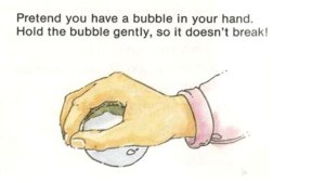 很多舊式鋼琴方法課本,往往都以拿住一個波波、或者一只雞蛋、或者一個泡泡來教導學生手形。(見下圖)