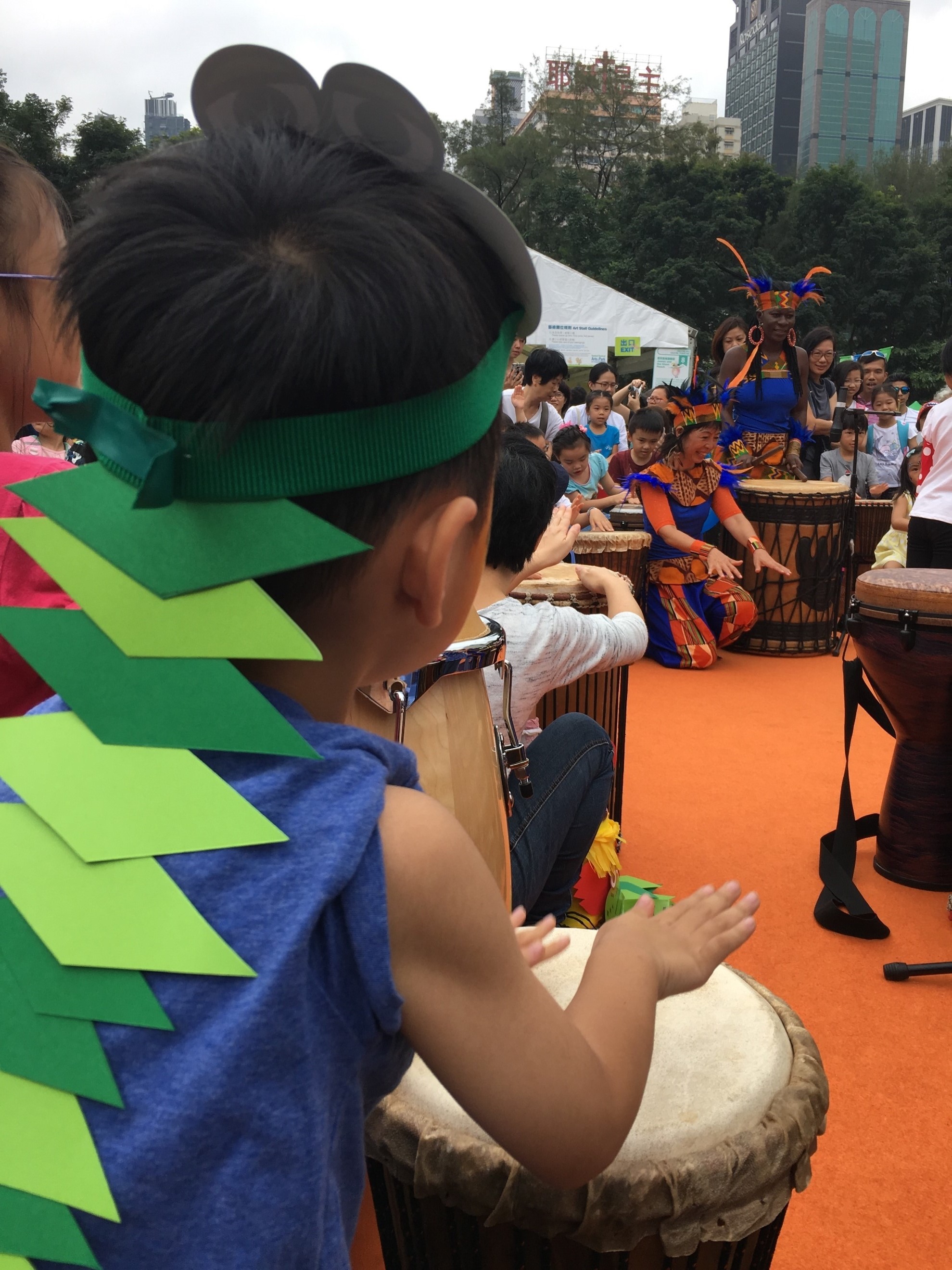 在香港渣打藝趣嘉年華會上,剛巧有非洲鼓工作坊。