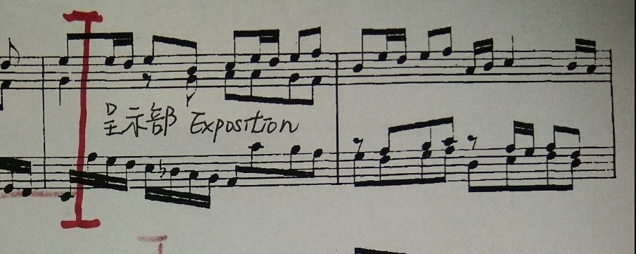 然後7-8小節便展現岀一個完美的呈示部,因為這裏“主題”, “第1主題對應主題”及“第2對應主題” 同時間岀現了,將所有東西陳述一次