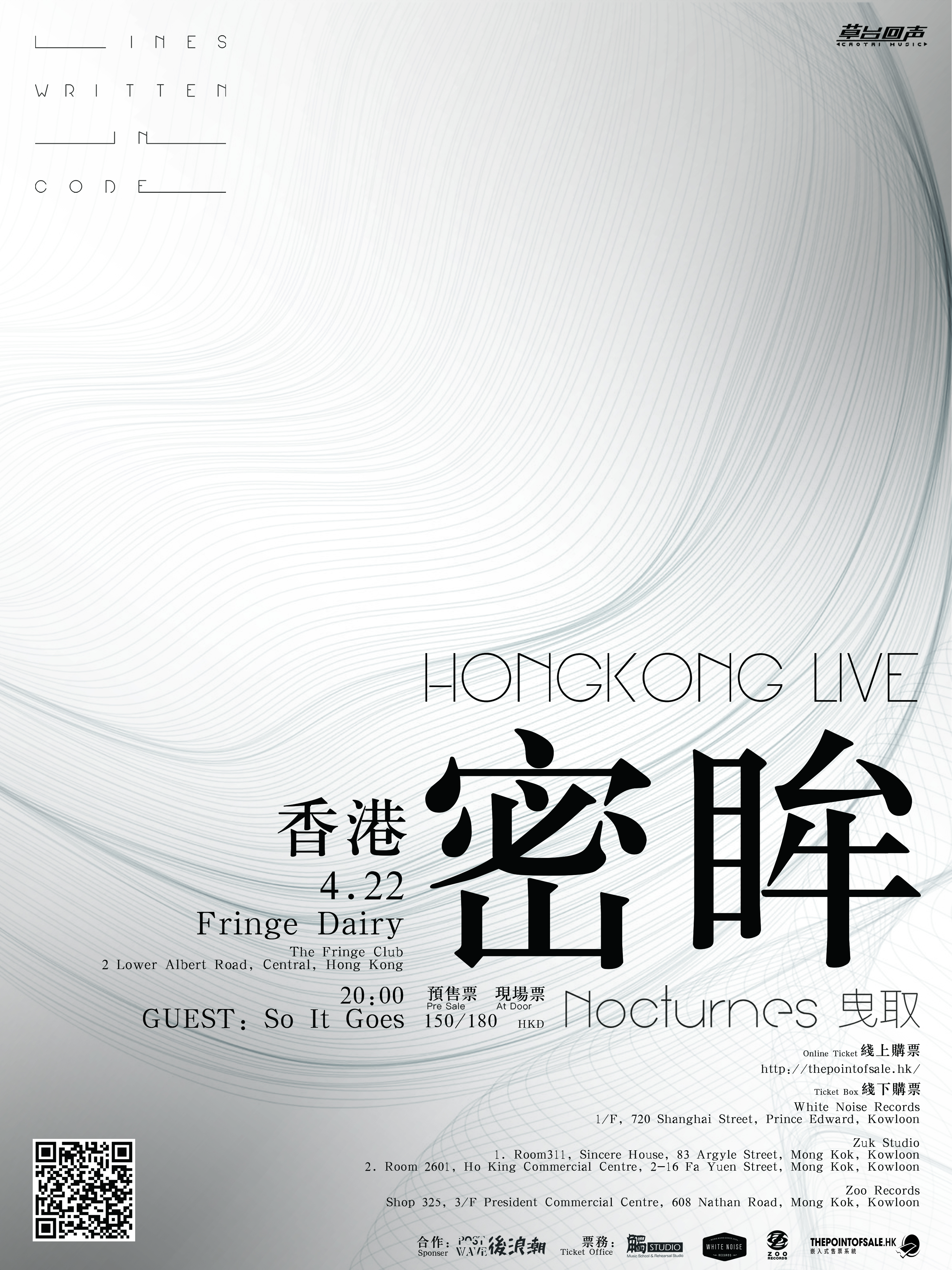 Nocturnes曳取全國巡演來到香港Fringe Dairy啦!他們深受中國獨立音樂市場的啟發,音樂風格獨樹一幟,代表著一種全新的可能性。他們將和演出嘉賓So It Goes一起,為大家呈現一場精彩的演出。
