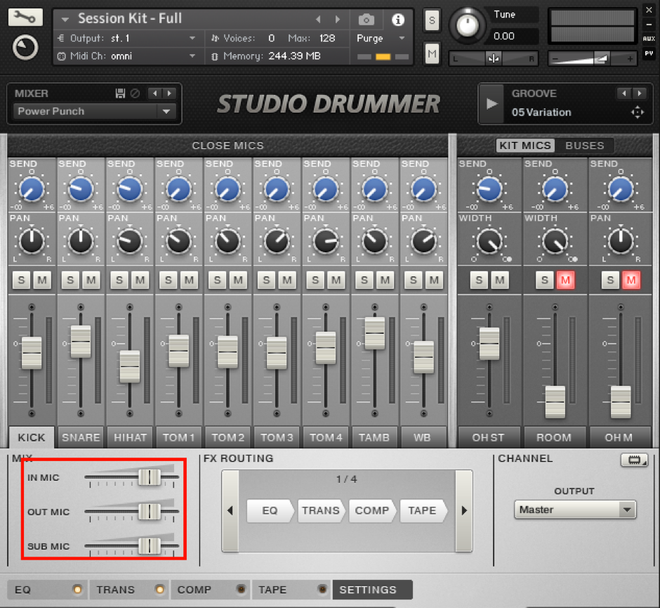 (圖:Native Instruments Studio Drummer可以獨立輸出kick in/out/sub的聲音)