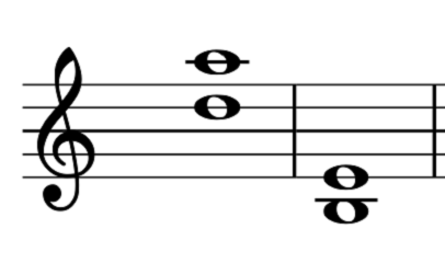 此外,我們還可以提出接近音域及不接近音域作爲題目。接近音域比較易,不接近音域比較難,如下例: