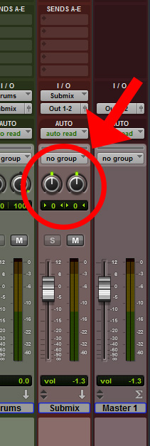 ▲附圖1:在Master Track前加一條Mix Bus,然後將左和右Panning都設至零