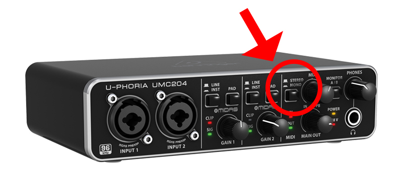 ▲附圖3: 有些Audio Interface內置Stereo/Mono按鈕,方便轉換。