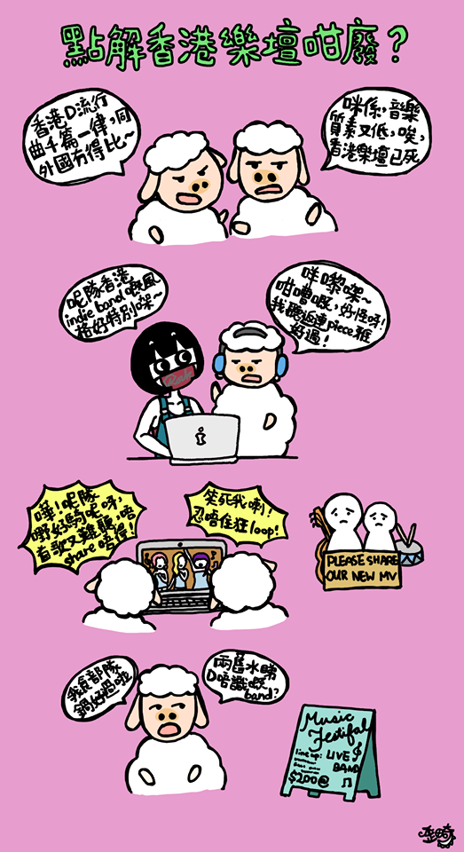很多人都說香港樂壇已死,遠比不上韓國,歐美,台灣等地方。其實,香港不論主流或indie都有很多高質素的音樂人,由其是indie最被忽略和支援,只要你認真聽香港的indie,你會發現選擇多不勝數,如果你認為indie 就等如metal,hardcore或者所謂「好嘈」音樂,只是你根本從來沒有踏足過這世界,indie裡很多類型比主流的選擇多,製作亦都頗具誠意。所以,  真正殺死樂壇的,是香港這個保守商業社會。