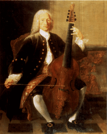 說完了樂器的結構和演奏方式,現在就說說古提琴的歷史和音樂吧!古提琴在巴洛克時代是一件非常流行的樂器,甚至許多貴族和皇室也會演奏這件樂器。在古提琴的歷史上,有幾位作曲及演奏家是不得不提及的。第一位要介紹的是法國作曲家和古提琴家Marin Marais(圖四)。佢曾在凡爾賽宮中擔任宮廷樂手。Marais一生創作了許多作品,當中有五本古提琴作品集是為兩個古提琴和通奏低音﹝Basso Continuo﹞而寫的。