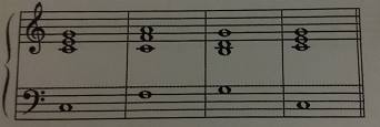 那就是代表以底音作為主和弦(底音加上以底音開始算起的三度、五度與八度音),按照這例子便會得出C major, F major, G majorC major。當然平行五度與平行八度還是禁止的,所以最後可以得出以下結果。
