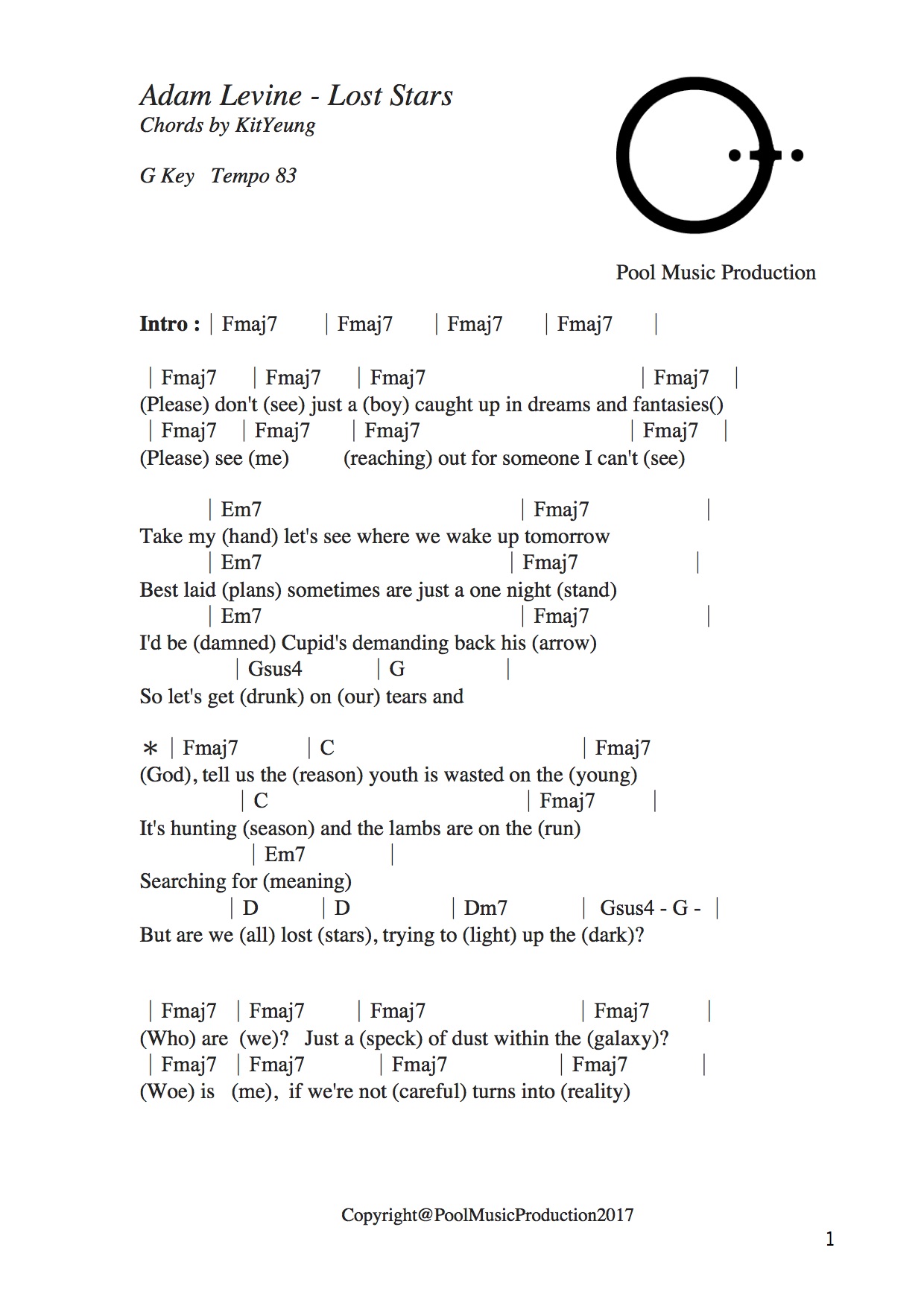 跟大家分享用心製作的歌譜【 Adam Levine - Lost Stars 】 歡迎下載樂譜用於 音樂教學 / Busking / 自彈自唱 讚好專頁: