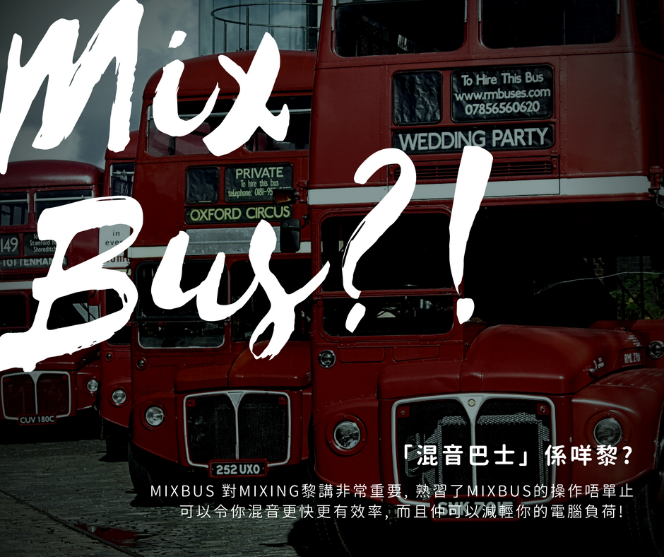 搭巴士,就是從一個地方至另一個地方;混音世界裡的巴士,就是將一條音軌的聲音訊息傳送到另一個條音軌,而將很多條音軌的聲音訊息都傳送到同一條音軌的時候,這個集合了多個聲音訊息的音軌就是叫Mix Bus。最簡單的例子:Master Channel,一條將歌曲中所有聲音都滙合的音軌,是一條Mix Bus。