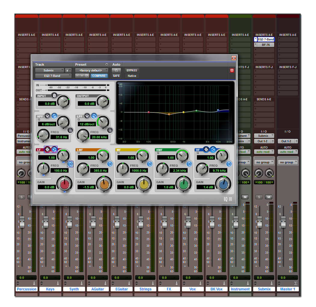 可是,有一點需要特別注意:由於Master Channel是滙聚了歌曲的所有音軌,你在這裡的任何改動都將影響到所有音軌。因此,在Master Channel的任何改動,都必須要是細微的。建議:平時在普通音軌裡,筆者曾建議改動大概3 db,如在Master Channel,所有EQ的增加和減少,都應在1.5 db以內;而壓縮器的Gain Reduction,應該在大概2 db內。